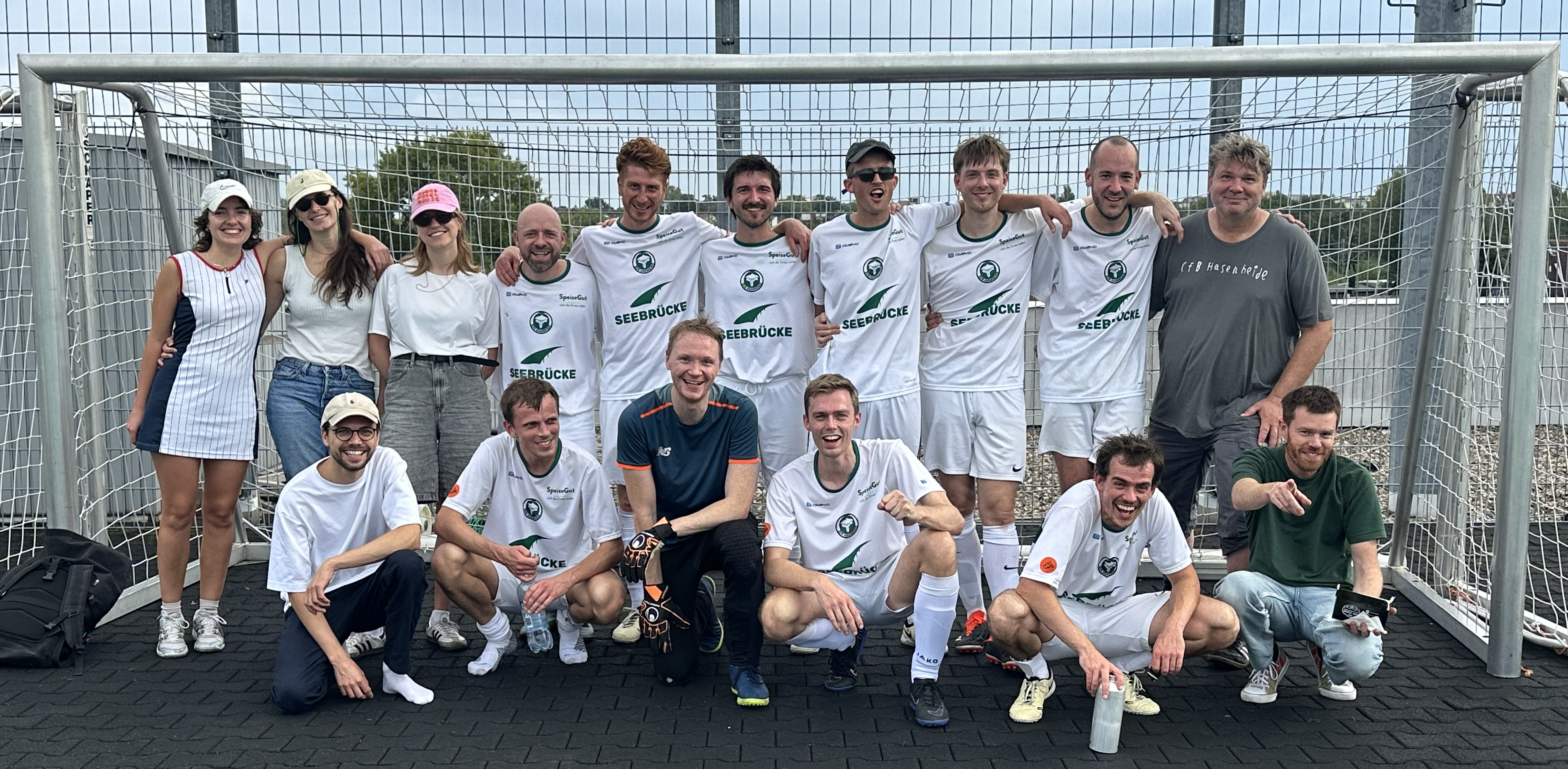 Sonntag, 21. September 2025. Ganz Berlin ist im Marathon Fieber. Ganz Berlin? Nein, die Hasen aus der Heide fokussieren heute auf das erste Ligaspiel in der obersten Spielklasse. Auf dem sagenumwobenen Hellwegdach geht es gegen die Mannen von Eintracht Südring. Und es sind doch noch genügend Spieler an Bord, nachdem es zunächst etwas knapp ausgesehen hatte. Als Verstärkung zwischen den Pfosten konnte Benni rekrutiert werden und er wird in den 90 Minuten eine wichtige Rolle spielen. Nachdem man beim ersten Gastspiel in der Verbandsliga sich mit Hurra-Fußball nur einen Abstiegsplatz erspielen konnte, geht der CFB mit neuer Taktik an den Start. Vorne hoffen - Hinten zu. Der Gegner wird erst an der Mittellinie attackiert und im Spiel nach vorne setzt man auf die Schnelligkeit der Offensivabteilung. Der Matchplan scheint aufzugehen, Südring hat deutlich mehr Spielanteile, aber die besseren Chancen sind auf der Seite der Hasen zu verzeichnen. Es entwickelt sich ein ansehnliches Spiel in der prallen Sonne mit vielen Wechseln auf beiden Seiten. Die Konzentration bleibt beim CFB hoch, und geduldig wartet man darauf, dass mal einer rein geht. In der 42. Minute ist es dann soweit. Jary haut den Freistoß in der Nähe der eigenen Eckfahne nach vorne, Vale nimmt virtuos an und legt rüber zu Peter. Einen Moment sieht es so aus, als würde dieser den Ball vertändeln aber kurz nach innen gelegt und rein das Ding. Ein strammer Schuss ins lange Eck und die Hasen gehen mit einer Führung in die Pause. In der zweiten Hälfte bietet sich den Zuschauenden ein ganz ähnliches Bild, jedoch erhöht Eintracht Südring den Druck noch einmal deutlich. Ihre Schüsse aufs Tor werden aber meist abgeblockt oder landen neben dem Kasten. Das weiße Ballett verliert in dieser Phase den Ball viel zu schnell und meist unnötig - kein Durchatmen für die Gäste. Zehn Minuten vor Schluss wieder ein langer Ball von Lukas. Valentin köpft den Ball über den weit vor seinem Strafraum stehenden Keeper, der reflexartig mit seinen Händen den flinken Star-Stürmer am Weiterlaufen hindert. Der Schiedsrichter zückt ohne zögern den roten Karton. Die turbulente Schlussphase läuft dennoch nach dem selben Schema wie das ganze Spiel. Auch mit einem Mann weniger ist es ein Spiel auf ein Tor. Und Eintracht Südring hat jetzt sogar die besseren Möglichkeiten und ballert zweimal gegen die Latte. Und Benni ist auch voll da, wenn er gebraucht wird. Aber natürlich ist bei den Kontern der Hasen jetzt mehr Platz. Debütant Daniel setzt sich auf der linken Seite durch. Spielt in die Mitte zu Jacob, der den Ball gleich auf Valentin weiterleitet. Der Ersatzkeeper kann den ersten Schuss noch abwehren im zweiten Versuch ist das Ding aber drin. In den verbleibenden Minuten beseitigt Benni jegliche Zweifel, ob er nach seiner Verletzung wieder in Form ist, und kratzt zweimal den Ball von der Linie. Dann ist Schluss und die Hasen starten mit einem Sieg in die neue Saison und setzen sich weiter in der Spitzengruppe der Verbandsliga fest. Eine starke Mannschaftsleistung des CFB! Statistic facts Erstmals legt ein Debütant sein erstes Spiel auf den eigenen Geburtstag. Glückwunsch Daniel! Benni auf Baumarktdächern immer siegreich Die nach dem Spiel vorgetragenen Abwerbeversuche von Jacob in Richtung Benni wurden vom Vorstand nur müde belächelt. Jona knickt um und ist früh raus - ist aber nichts Schlimmes Erstes Spiel mit einer roten Karte für den gegnerischen Torhüter Dabei waren: Jacob, Benni, Jona, Jary, FabianR, Lukas, Robin, Valentin, Daniel, Can und Peter S. ++ Zuschauende: Haye + Diverse ++ Statistik aktualisiert Spielverlauf: 42 0 : 1 Peter Valentin 89 0 : 2 Valentin Jacob